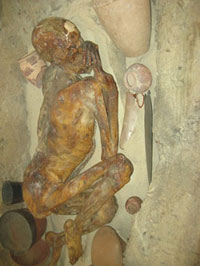 The British Museum houses a naturally preserved dead body that was discovered by the Red Sea. The body has hair and even toe and fingernails. The corpse has all its internal organs intact and its in prostrating position.